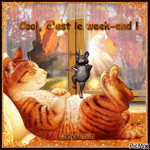 Bonjour Dilou , marrante cette image ci , vais me poster là pour te souhaiter un bon week-end et courage à vous tous , beaucoup sont malades de la grippe , et beaucoup de gastro , chez nous ça va jusqu'à maintenant !!!! Caresses à Plume , Lily et Vagabond . Fifi a tout manger aujourd'hui , j'ai vu mon mari revenir avec le sourire , j'étais contente et elle va bien .... Gro gros bisoussssshttp://lesmusiquesdetiti.centerblog.net