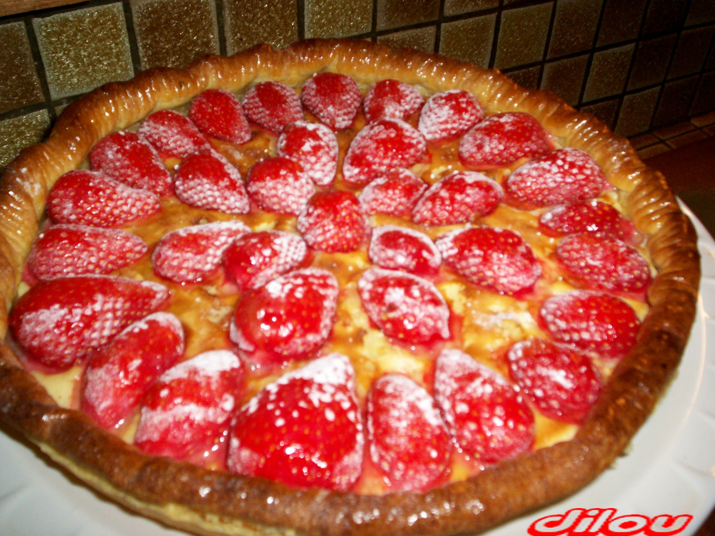 une bonne tarte, crème patissière et fraises...http://harmony2011.centerblog.net